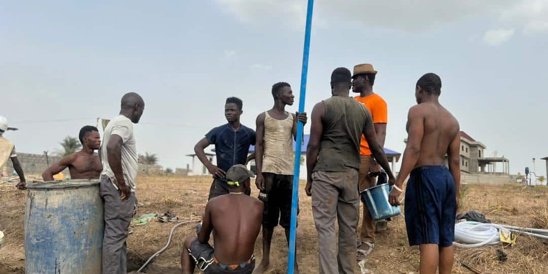 I am in Sierra Leone for a three-day training on the construction of manual bore holes to provide clean drinking water and irrigation for people living in rural and urban Sierra Leone. Mr. Benson Konden (waterman) and his team are training our SEP team of 10 youths to master the skills for drilling bore holes and installing SEP Rope Pumps and other pump systems on top of those bore holes.